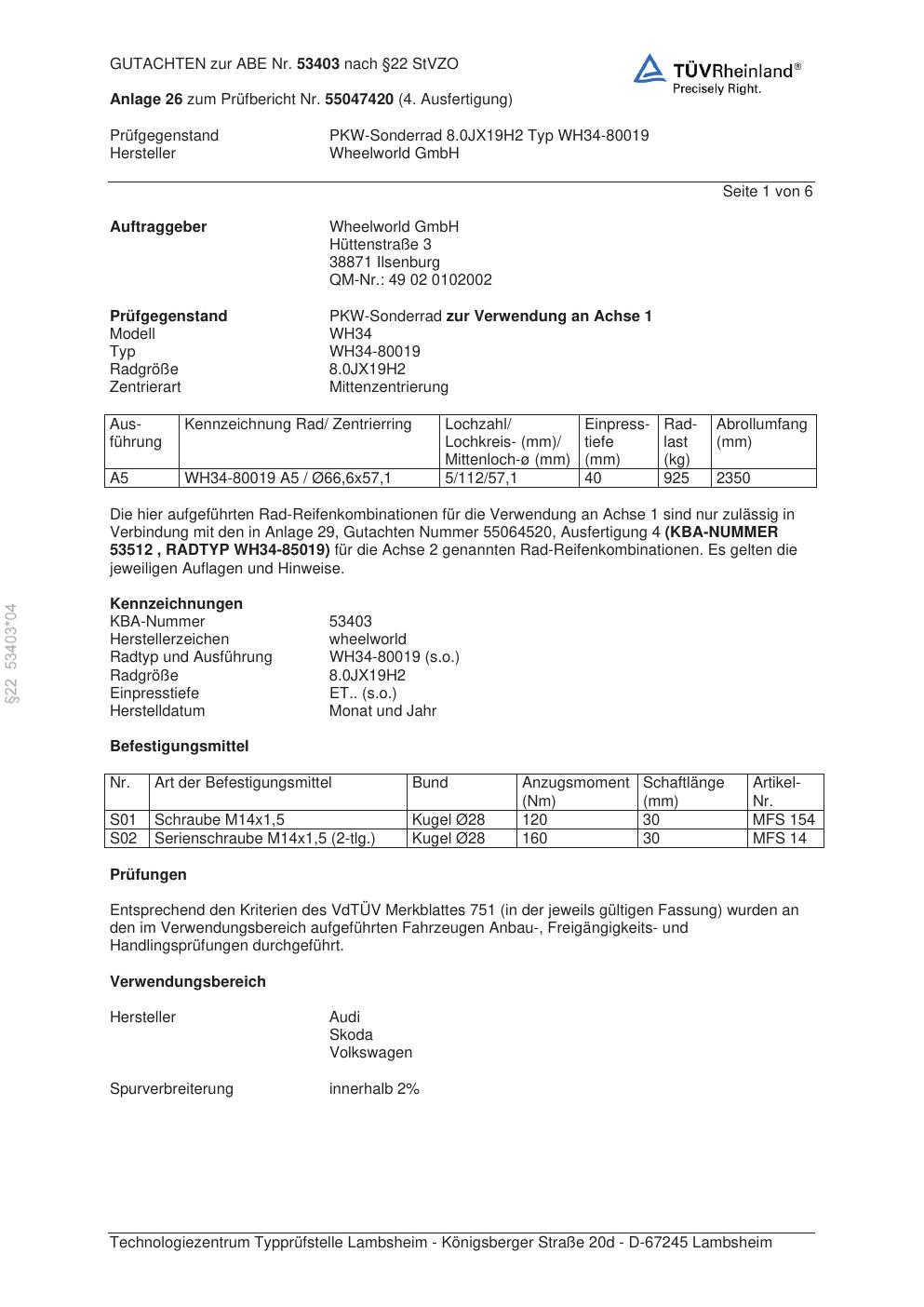 Dieses abe gehört zur Felge Wheelworld WH34-80019 in ET0 mit KBA 53403. Die Seite ist dafür gedacht, dass du schnell prüfen kannst, ob KBA, Design und Größe zu deiner Felge passen und danach direkt das richtige PDF lädst.