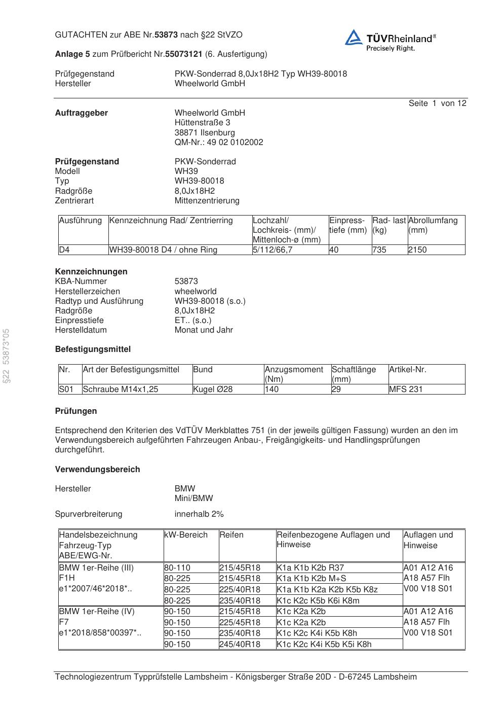 Dieses abe gehört zur Felge Wheelworld WH39-80018 in ET0 mit KBA 53873. Die Seite ist dafür gedacht, dass du schnell prüfen kannst, ob KBA, Design und Größe zu deiner Felge passen und danach direkt das richtige PDF lädst.