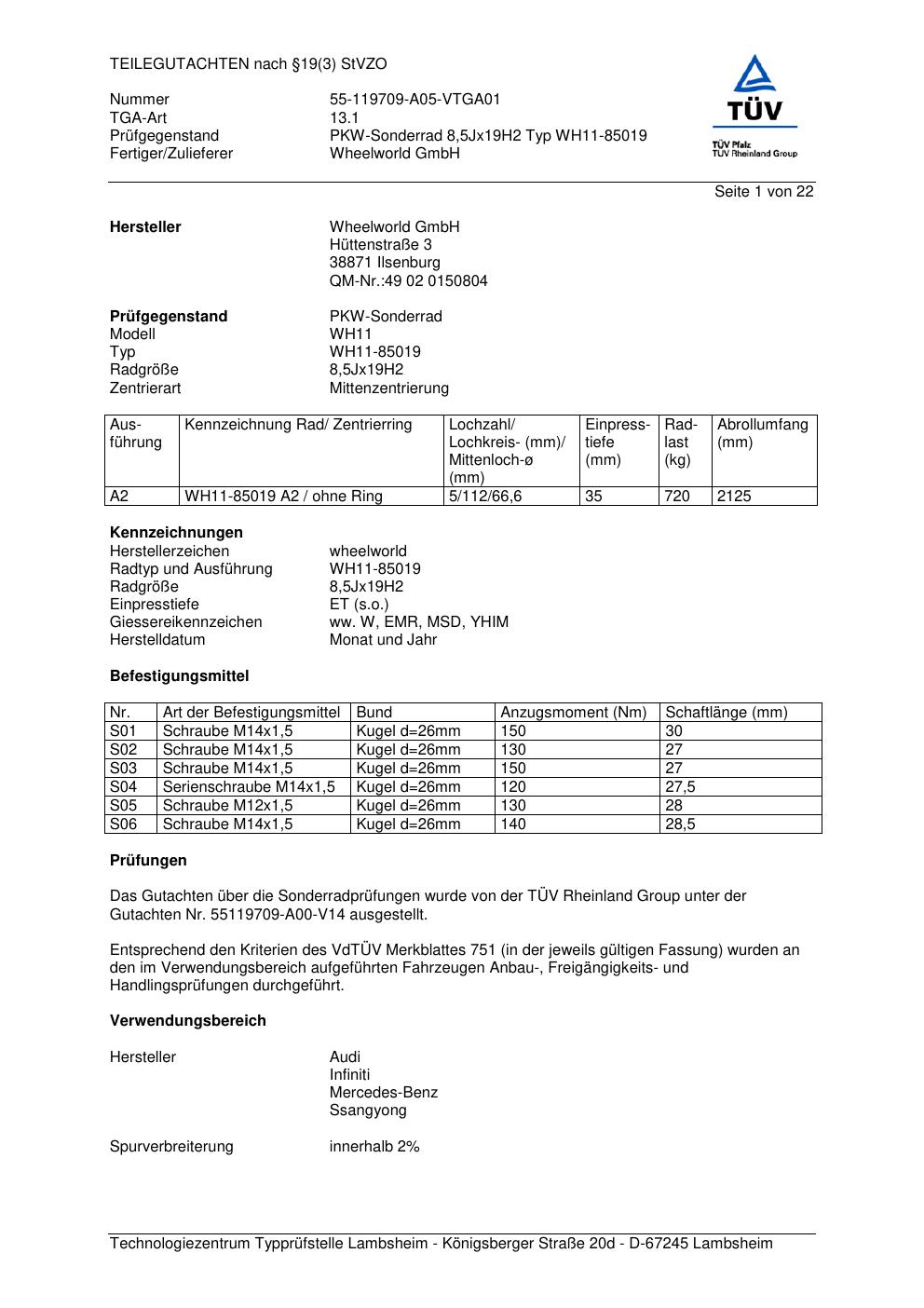 teilegutachten 55-119709-a05-vtga01 Wheelworld WH11-85019