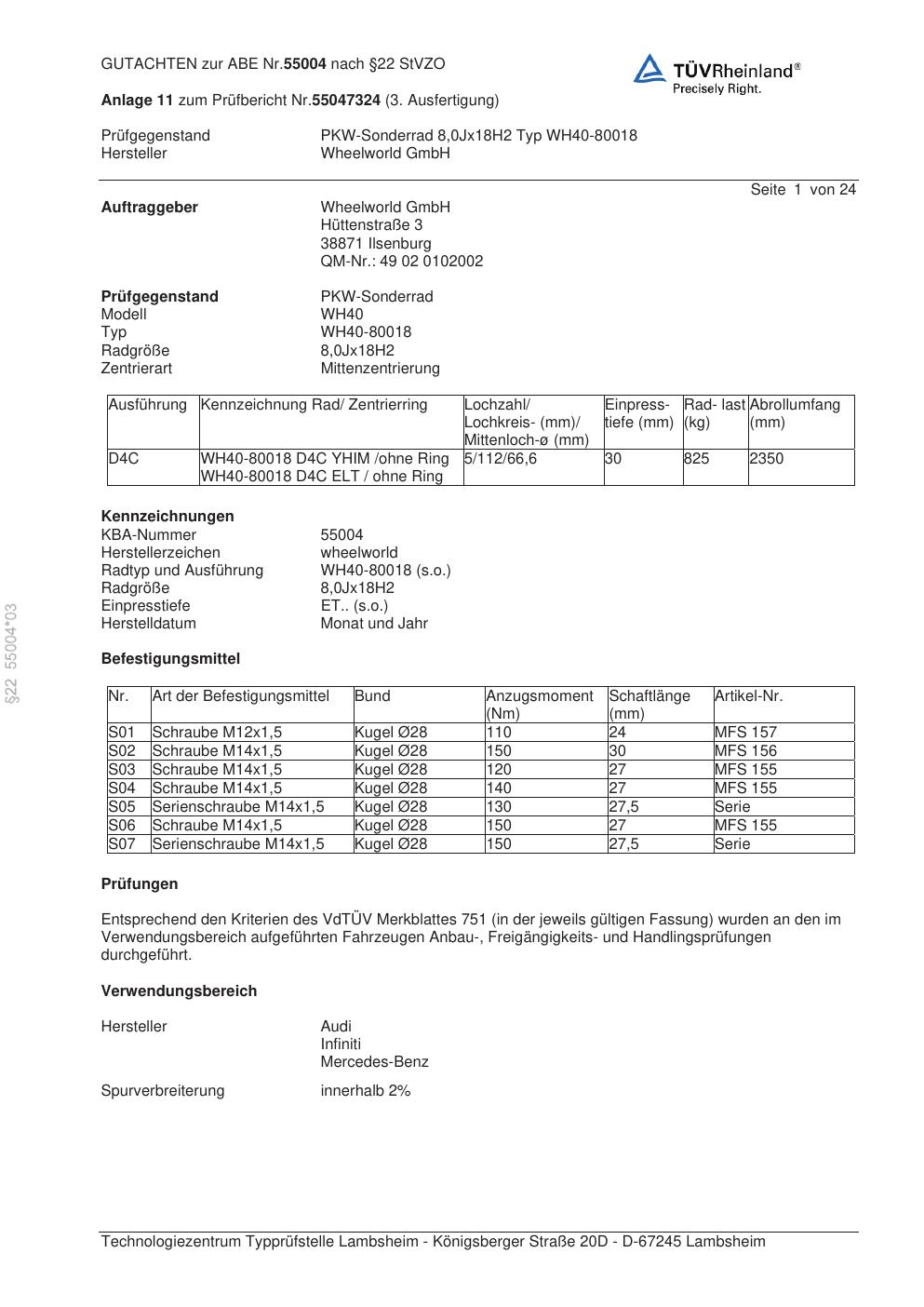 • Stimmt die KBA-Nummer auf der Felge mit diesem Dokument überein?